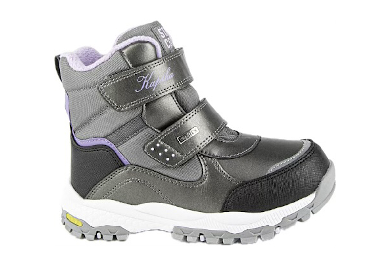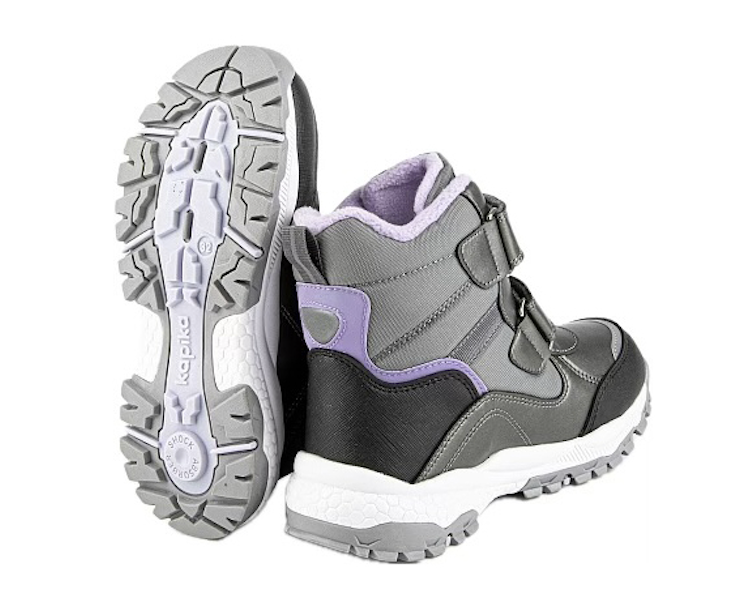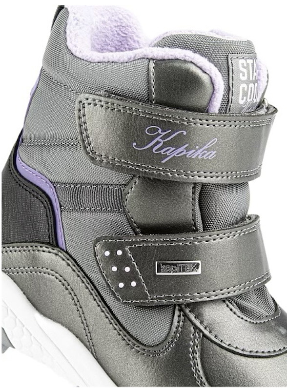 Утепленные ботинки с мембраной Kapitex — это комфортная в ношении обувь, которую выбирают для холодного демисезонного и зимнего периода (с температурой до -30 градусов). Мембранная обувь с высоким голенищем обеспечивает комфортный микроклимат, предотвращает проникновение влаги. Популярная модель из коллекции бренда Kapika оснащена двумя стельками для сохранения тепла в течение длительного времени, для надежной защиты ножек ребенка от мороза, ветра и холода. Теплая выемная стелька выполнена с фольгированным слоем (фольга + шерсть + текстиль), а вторая располагается под первой и представлена в виде чулка в сочетании шерсти и текстиля. Удобные ботинки оснащены в меру упругой, массивной тракторной подошвой из ЭВА с противоскользящими накладками из ТЭП. Износостойкая эргономичная подошва анатомической формы не допускает скольжения на гладких поверхностях, предотвращает падения и травмы. Верхняя часть ботинок выполнена в сочетании плотного текстиля и непромокаемых вставок из искусственной кожи. Детская обувь доступна в размерах от 26-го до 42-го, с полнотой стопы F (6), фиксируется по ноге с помощью двух липучек. Носочная часть ботинок усилена прочным матрикс-кевларом, жесткий задник также предназначен для защиты ножки.